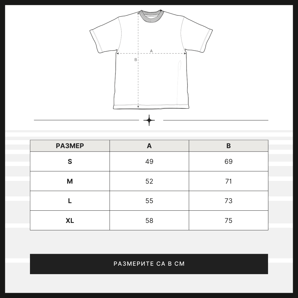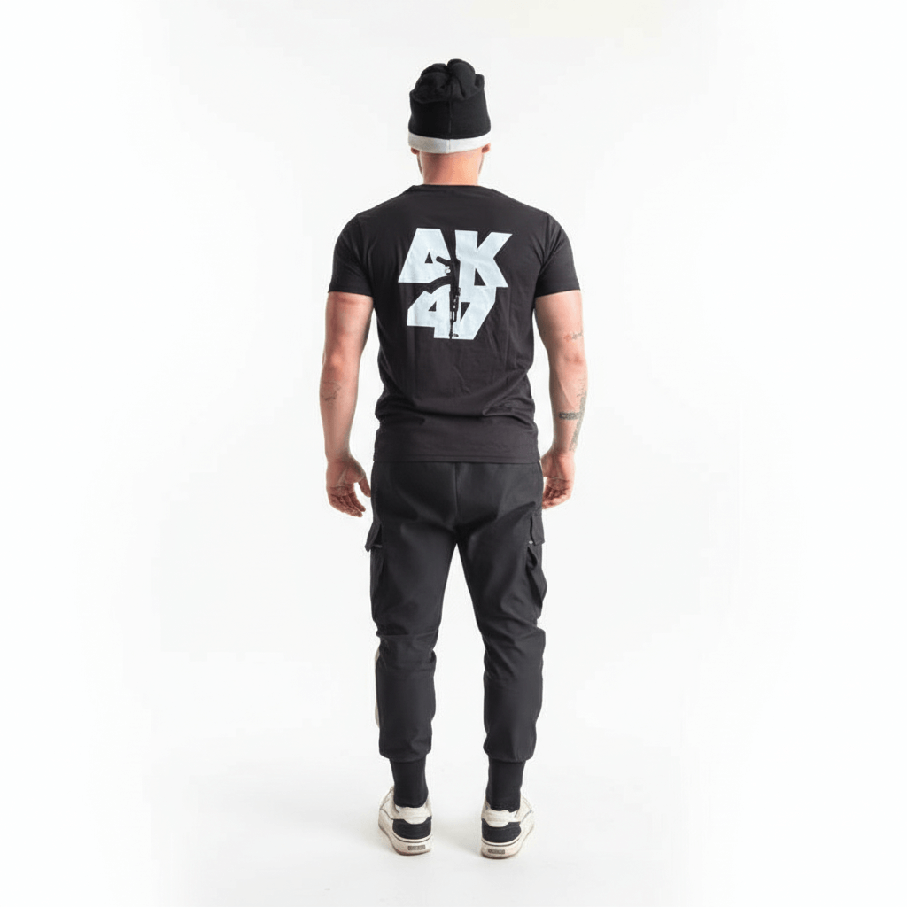 Черно-бял, суров и без компромиси дизайн, в който емблематичният силует на AK-47 разрязва масивната типография и носи духа на улицата от 90-те. Вдъхновена от руската улична култура, тази тениска говори за сила, независимост и неподчинение на системата.